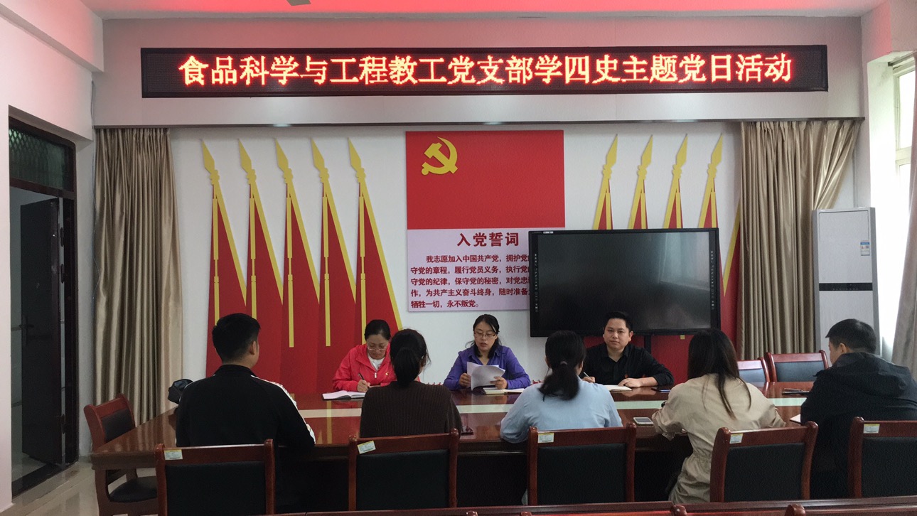 为了深入贯彻习近平总书记关于“四史”学习的讲话精神,9月25日上午,食品科学与工程教工党支部在1B206开展学四史主题党日活动,活动由支部书记李建芳主持,支部全体党员参加。