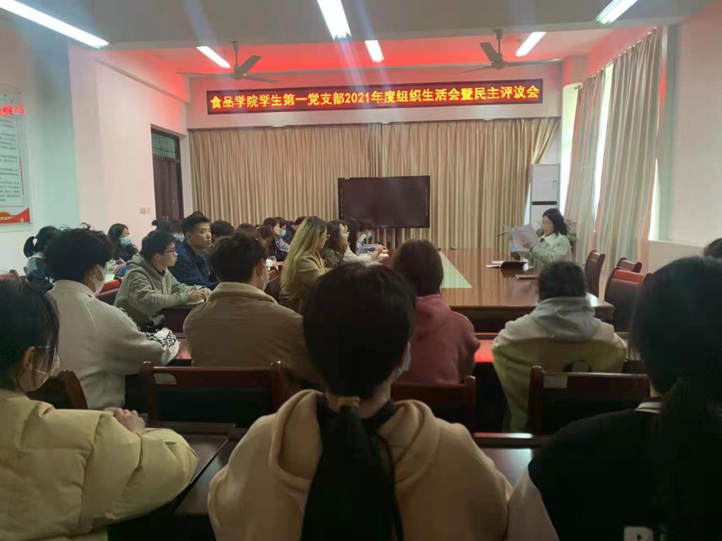 根据《中共河南省委组织部转发〈中共中央组织部关于召开2021年度基层党组织组织生活会和开展民主评议党员的通知〉的通知》(豫组通〔2021〕41号)和《beat365在线平台官网2021年度党支部组织生活会和开展民主评议党员实施方案》(信农组发〔2022〕4号)文件要求,2022年2月22日,食品学院学生第一党支部召开2021年度组织生活会暨民主评议党员大会。会议由支部书记黄卉卉主持。