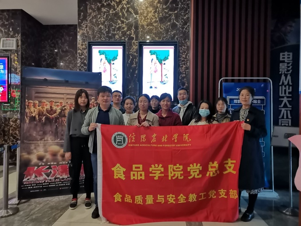 学习“四史”文化,传承红色基因。为持续深入开展党史学习教育,进一步弘扬爱国主义精神,激发党员干部的爱国热情,10月15日下午,食品学院食品质量与安全教工党支部组织全体党员干部观看爱国主义教育影片《长津湖》。