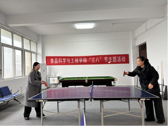 活动现场气氛热烈而温馨。学院工会提前布置了场地,并准备了乒乓球、五子棋、台球等丰富多彩的文体娱乐项目。女教职工们暂时放下繁忙的工作,踊跃参与到各项活动中。乒乓球桌前,她们挥拍切磋,展现活力;五子棋棋盘上,她们凝神思考,智慧交锋;台球案旁,她们潇洒挥杆,英姿飒爽。现场欢声笑语不断,大家在轻松愉快的氛围中放松了身心,增进了彼此间的交流与情谊。