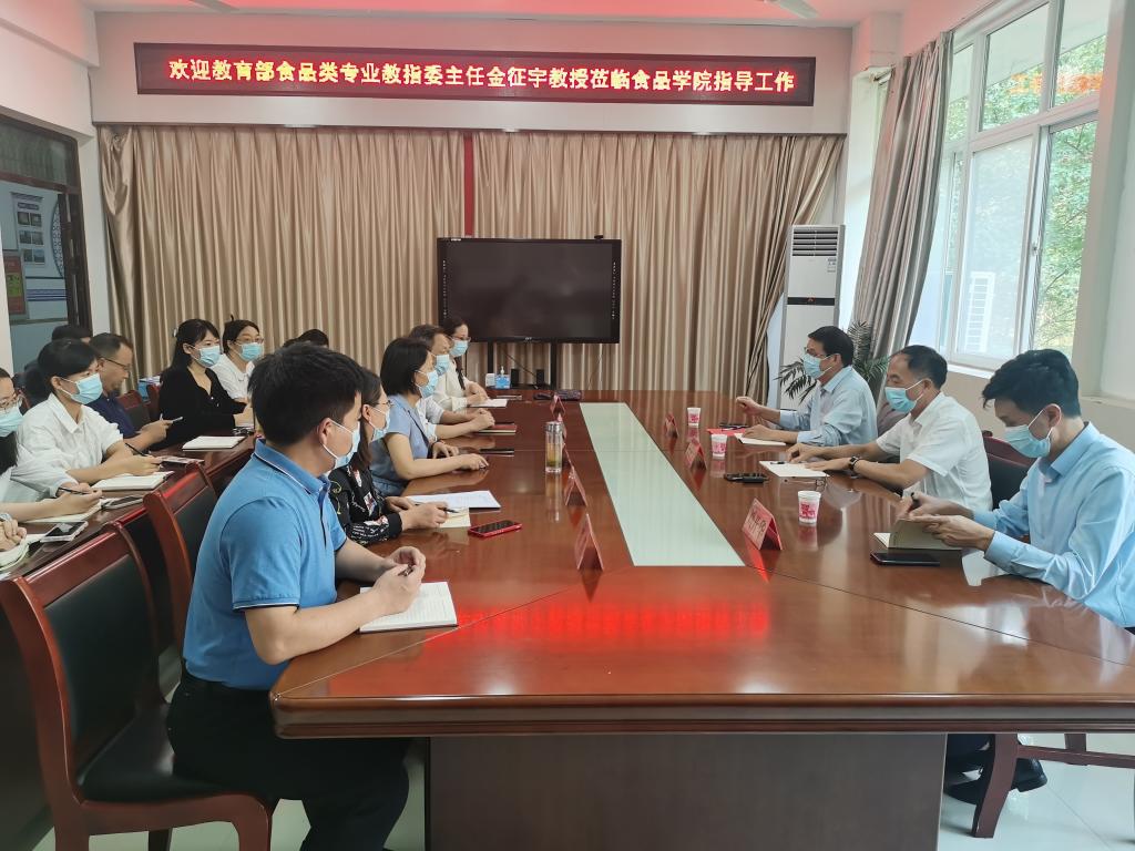 2022年9月3日,教育部食品专业教学指导委员会主任委员、江南大学原副校长金征宇教授应邀到我院考察交流。beat365在线平台官网副校长赵聘教授、教务处处长刘开华教授、食品学院领导班子、专业负责人及骨干教师参加。