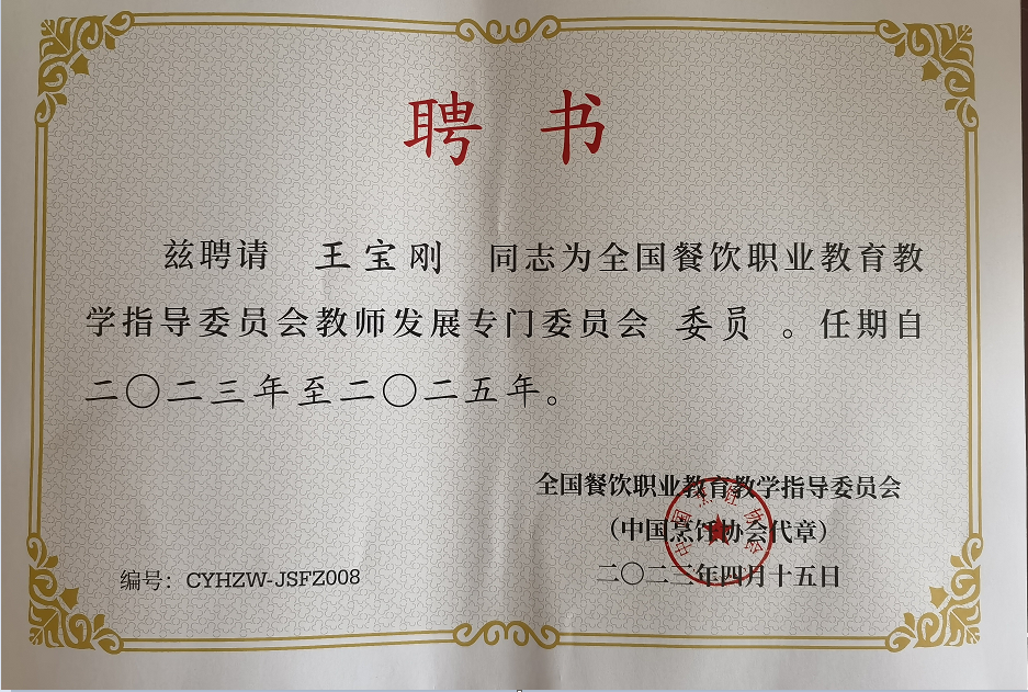 会议传达学习了教育部关于2023年职业教育的重点工作,并就“推动职普协调发展,为经济社会发展输送高技能人才”话题进行了深入探讨。会议通报了两委会2022年度工作总结和2023年度工作计划,调整增补了两委会委员,审议通过了全国餐饮职业教育教学指导委员会分专门(专业)委员会设置方案以及管理办法。同时,成立了全国餐饮职业教育教学指导委员会校企合作、教学研究、专业建设和教师发展四个专门委员会。食品学院烹饪与营养教育专业教研室主任王宝刚被聘为全国餐饮职业教育教学指导委员会教师发展专门委员会委员。