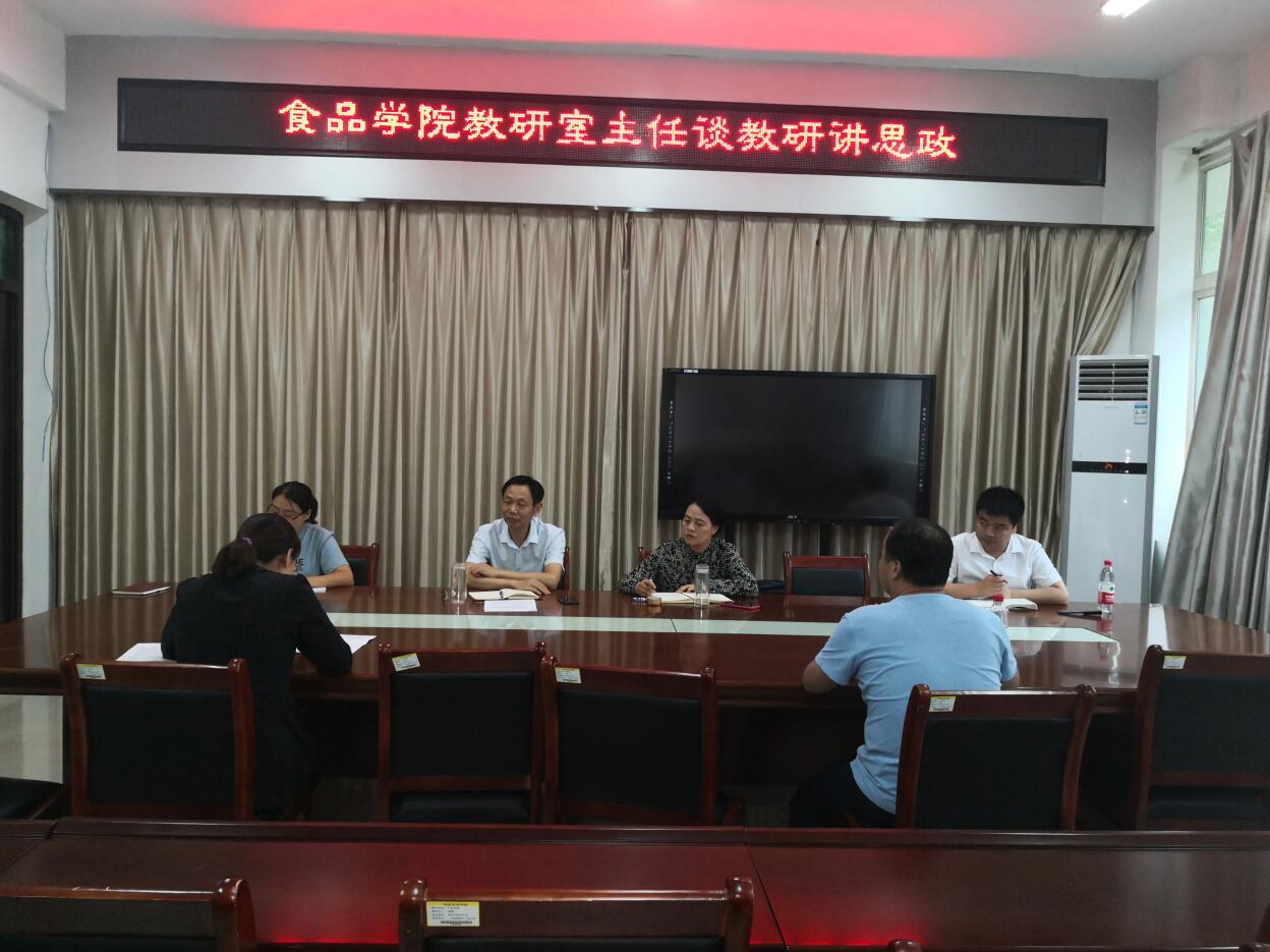 为进一步推动课程思政、思政课程建设,稳步提升教研室主任工作能力和水平,打造“金课、金师”,以本科教学合格评估为契机,按照《beat365在线平台官网“讲评建促发展”系列活动方案》要求,我院于2020年9月15日下午在科技楼1B206开展了教研室主任“谈教研、讲思政”活动。食品学院院长邢淑婕、食品学院党总支书记夏新奎及其他领导班子成员、专业教研室主任和部分教师代表参加了此次活动。