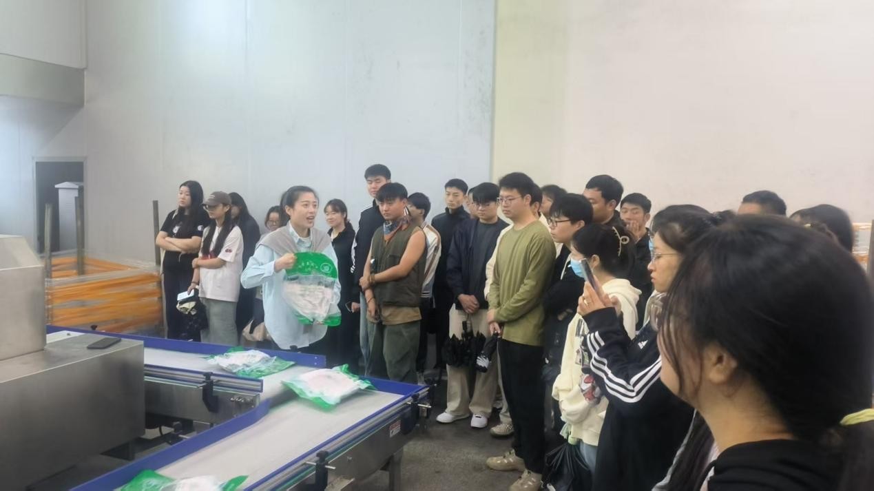 国兵生态鱼业发展有限公司是一家集水产品研发、加工、销售、冷藏、物流于一体的食品供应链公司。公司人事部经理黄晶晶现场为学生介绍了鱼制品的加工过程,带领学生观摩鲜鱼的低温运输、人工处理、超低温液氮速冻和智能分拣等工序,并讲解了相关技术。