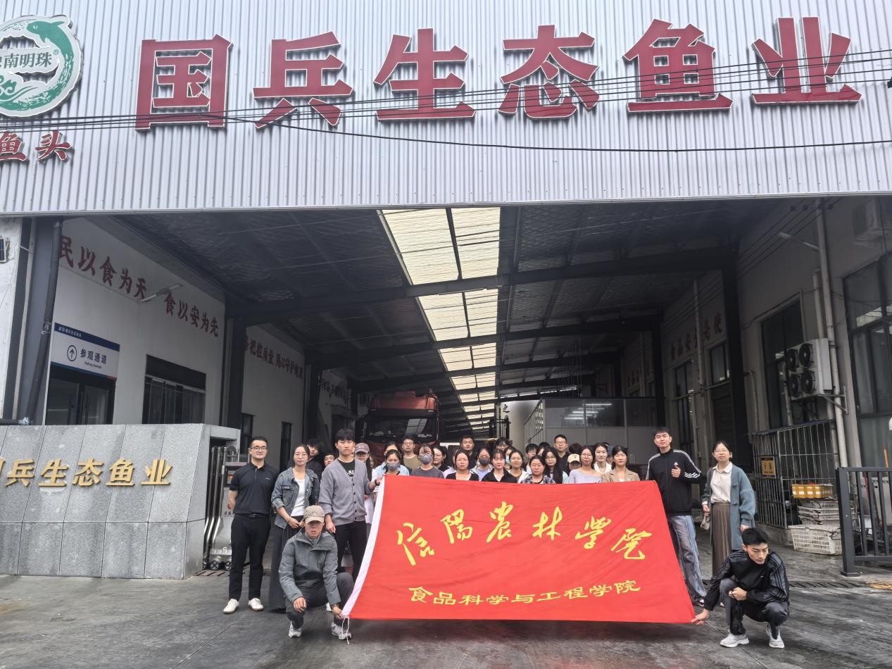 9月18日和25日,食品科学与工程学院专任教师刘海波、王晓雪和陈鑫沛带领食品质量与安全(专升本)24级137名学生和食品质量与安全22级88名学生赴信阳市国兵生态鱼业发展有限公司开展食品安全与检测社会实践实训周项目。