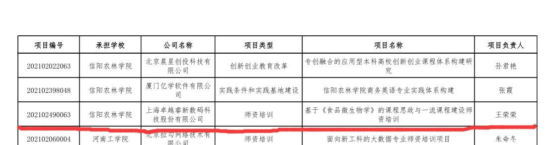 根据《教育部高等教育司关于公布2021年第二批产学研合作协同育人项目立项名单的通知》,我院“基于《食品微生物学》的课程思政与一流课程建设师资培训”通过评审,并予以立项。项目负责人及团队成员要与相关企业加强联系,按照要求高质量高效推进项目实施。