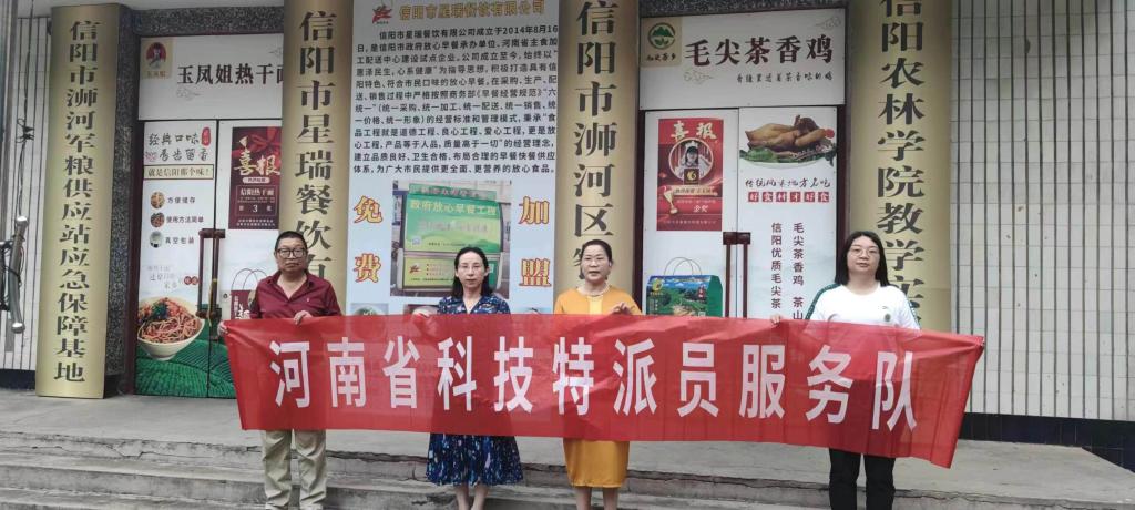 2024年5月26日,河南省科技特派员邵颖教授、邬全喜高级实验师、张园园副教授、刘晓媛等一行4人应邀到信阳市星瑞餐饮有限公司开展科技服务。
