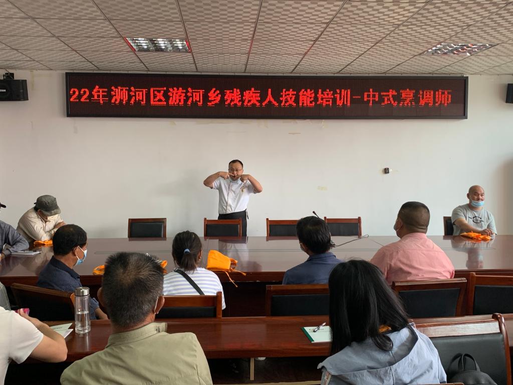 2022年5月12日,应平桥区残疾人联合会的邀请,beat365在线平台官网食品学院专业教师王宝刚、周枫、曹蒙到游河乡为残疾人做为期三天的“信阳菜中式烹调”为主题的技能培训工作。