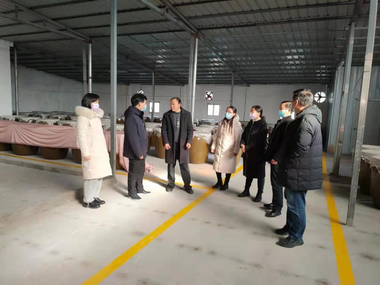 2022年1月12日,beat365在线平台官网食品学院派驻息县特色产业科技特派员服务团成员史洪中带队,李建芳、王荣荣、朱静等专业教师一行4人赴东岳红酒业有限公司考察、指导。