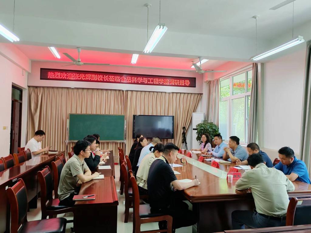 5月8日下午,张光辉副校长带领科学技术处处长刘纪成、发展规划处处长熊元靖等一行六人莅临食品科学与工程学院调研指导科研工作,食品科学与工程学院党总支书记李海祺、院长李建芳等领导班子、各专业负责人、教师代表参加座谈会。