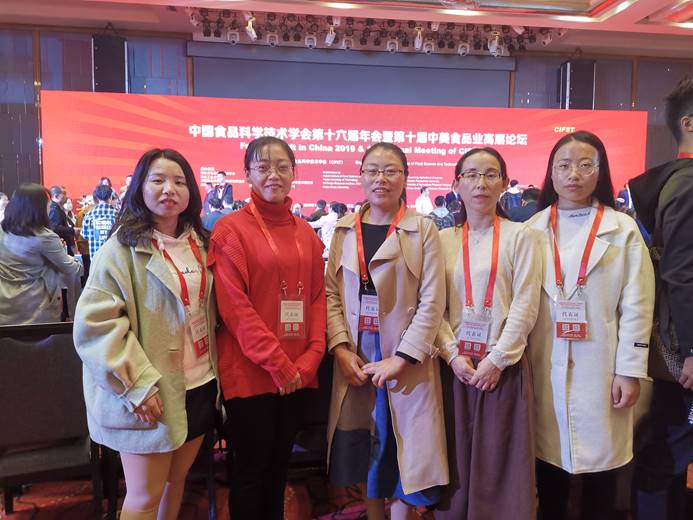 11月13-14日由中国食品科学技术学会主办,湖北省食品科学技术学会、华中农业大学、湖北工业大学、武汉轻工大学、中国农科院油料作物研究所、湖北省农业科学院、湖北民族大学、国粮武汉科学研究设计院有限公司等单位承办的“食品科学技术学会第十六届年会暨第十届中美食品业高层论坛”在湖北省武汉市召开。本次参会代表2500余人,beat365在线平台官网食品学院副院长邵颖、副院长李建芳、科研秘书王荣荣、杨玲玲、陈亚蓝一行5人应邀参加。