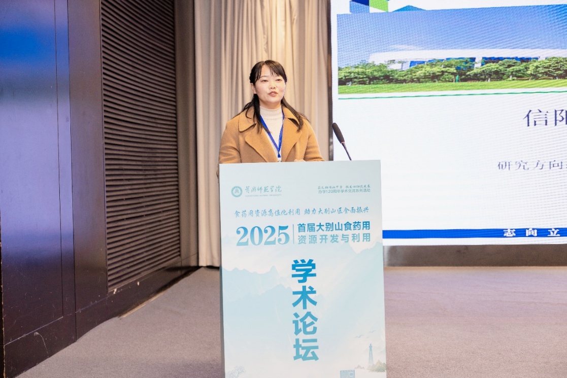 本次大会设置两个分会场,为参会者提供更深入的交流平台,促进不同领域观点的碰撞与合作。来自华中农业大学、江汉大学、淮北师范大学、安庆师范大学、河南牧业经济学院、黄冈师范学院和皖西学院等多家单位的专家学者分享了各自领域关于食药用资源的最新研究成果。我院王清老师受邀在大会上作报告分享,主要介绍了信阳特色药食同源及其研究进展,引发了在场学者的浓厚兴趣。