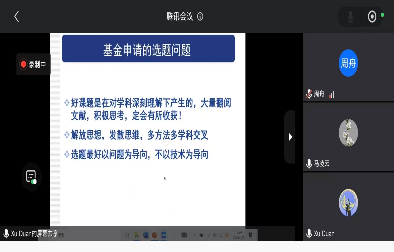 会议最后,王荣荣作总结发言。她强调国家自然科学基金对学院科研实力提升和学科发展的重要意义,希望全体参会教师以此次报告为契机,认真消化吸收报告精华,结合自身研究方向精准对标申报要求,在选题上聚焦前沿、突出创新,在撰写中精益求精、打磨细节,同时加强交流协作,形成互帮互助、共同进步的科研氛围。