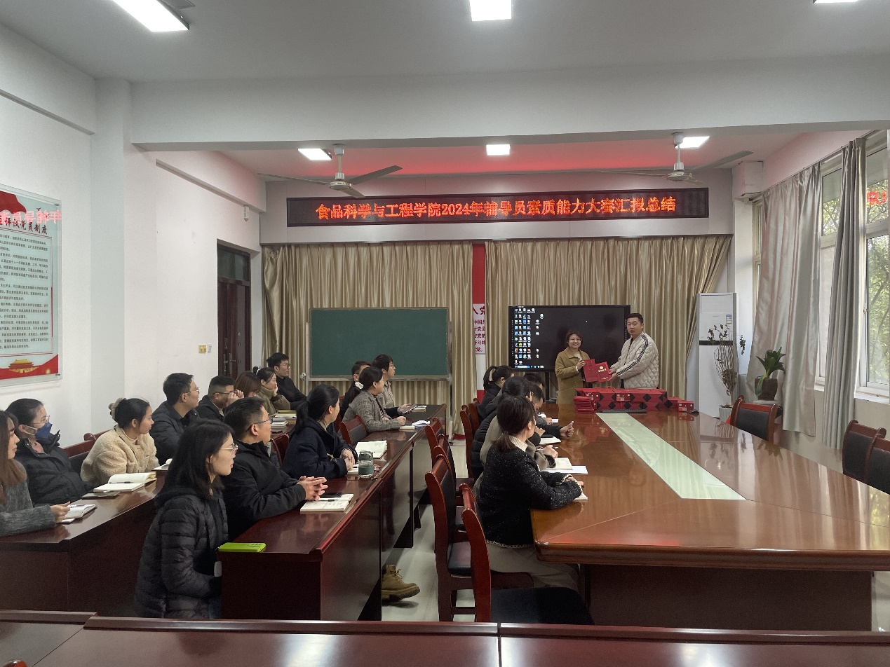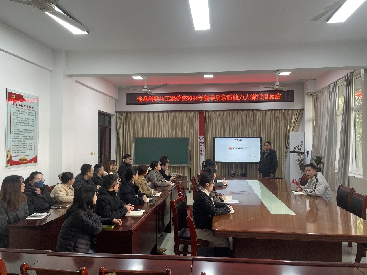 为进一步提升辅导员的专业素养和职业能力,突出以赛带练、以赛代训,强化以赛促学、以赛促建,全方位提升我院辅导员的理论水平、专业素养和工作能力,并为学校复赛做准备,2024年12月10日至11日,食品科学与工程学院开展辅导员素质能力大赛初赛,全体专兼职辅导员参赛。