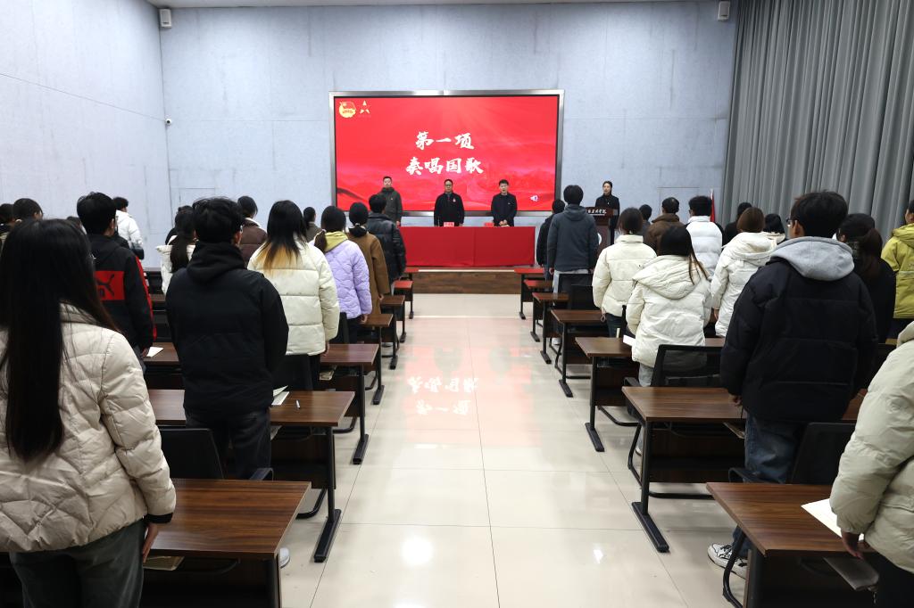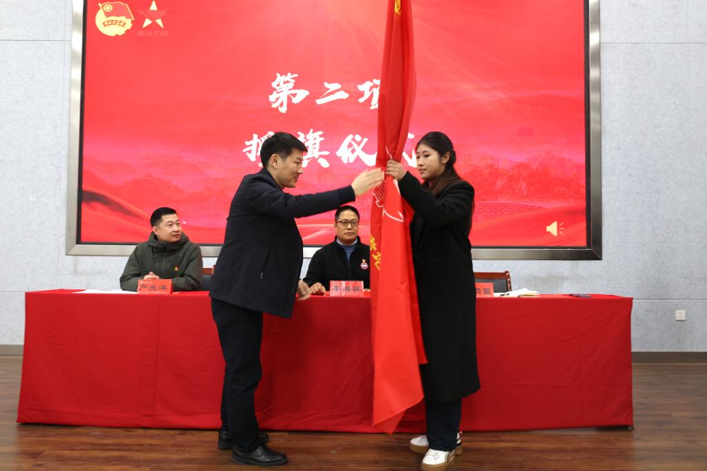 仪式在雄壮的国歌声中拉开帷幕。朱同留为培训班授旗。严兆洋传达了学院“青马工程”培训班纪律要求。易蕾宣读了培训班学员名单、临时团支部支部委员会成员名单、班委会名单。