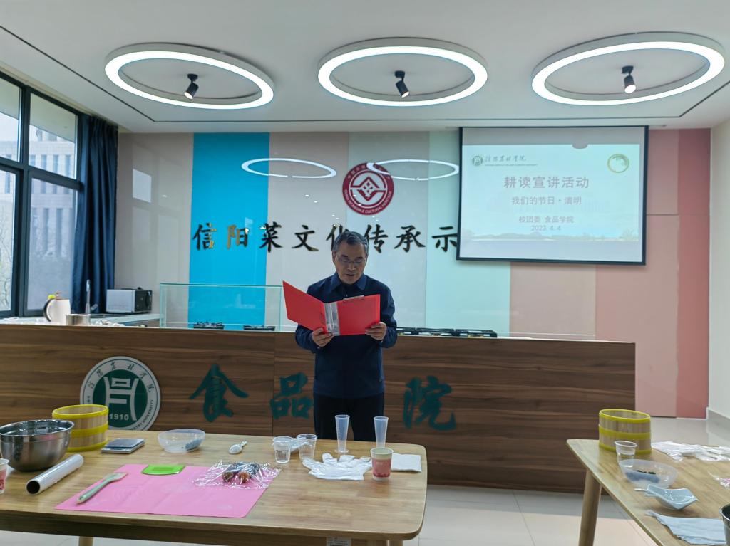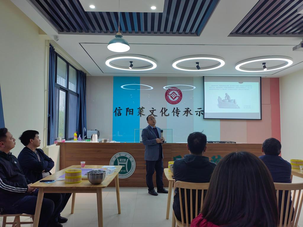 食品学院王宝刚老师就中国传统饮食文化、节气与信阳菜的发展和演变作题为《节气与信阳食文化》主题宣讲,生动展示了中国饮食文化的源远流长以及信阳菜悠久的历史和丰富的文化内涵。