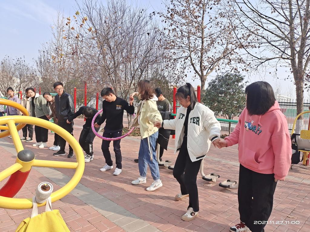 为进一步推动我院心理育人工作,提升学生身心素质,增强班级凝聚力,11月27日,食品学院在操场开展心理素质拓展活动,21级新生全部参加。