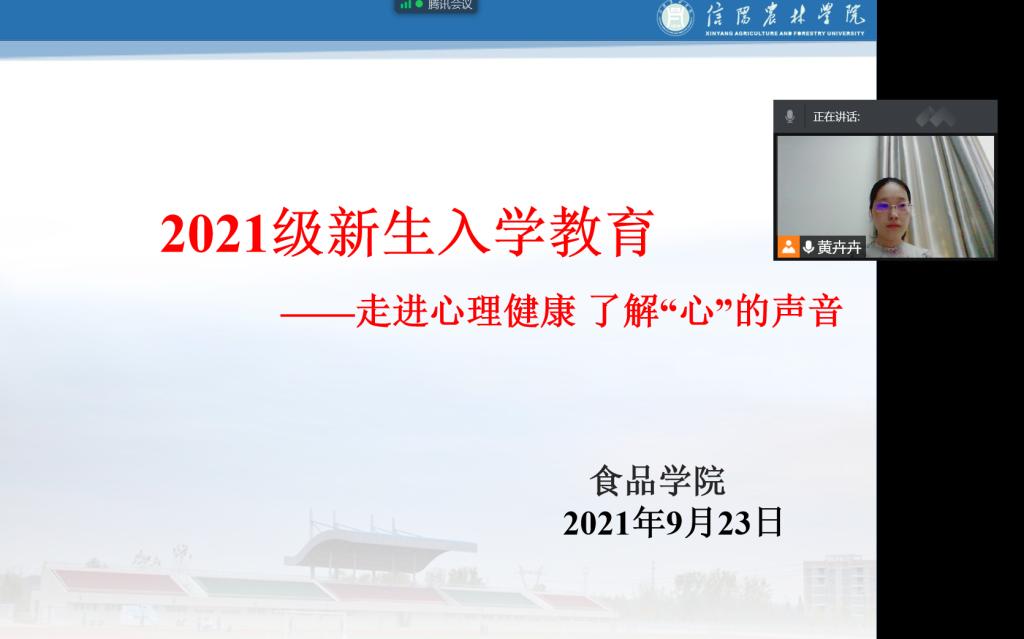 为帮助新生了解心理健康相关知识,以良好的心态投入到大学学习和生活,9月23日上午,食品学院心理专员黄卉卉老师为2021级新生做了题为《走进心理健康——了解“心”的声音》线上心理健康教育讲座。