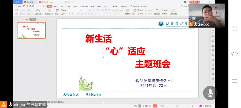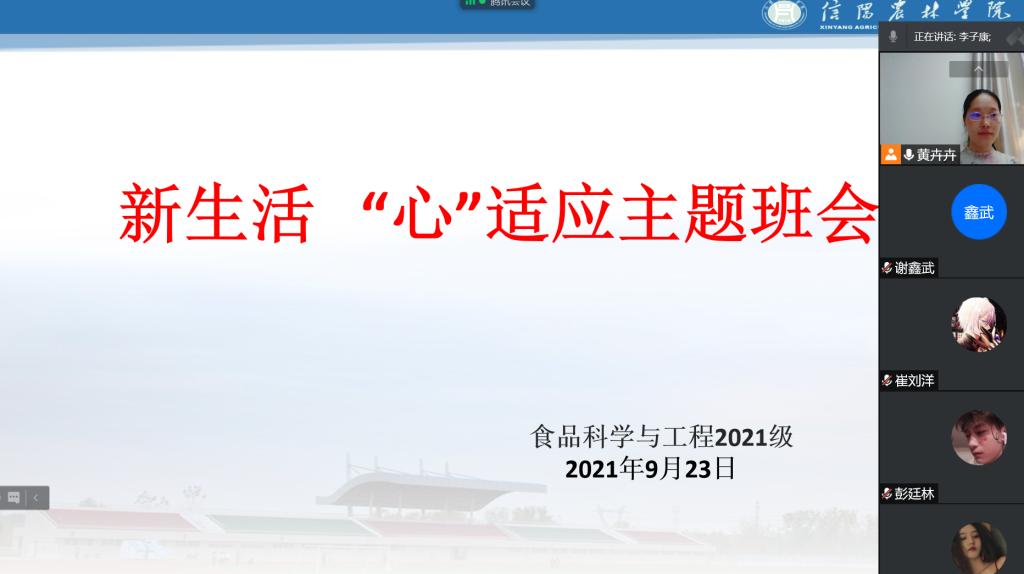 下午,新生辅导员组织各班召开了“新生活,‘心’适应”线上主题班会,引导新生分享了大学生活新变化、对大学生活的期待和展望以及如何做好大学四年规划等。