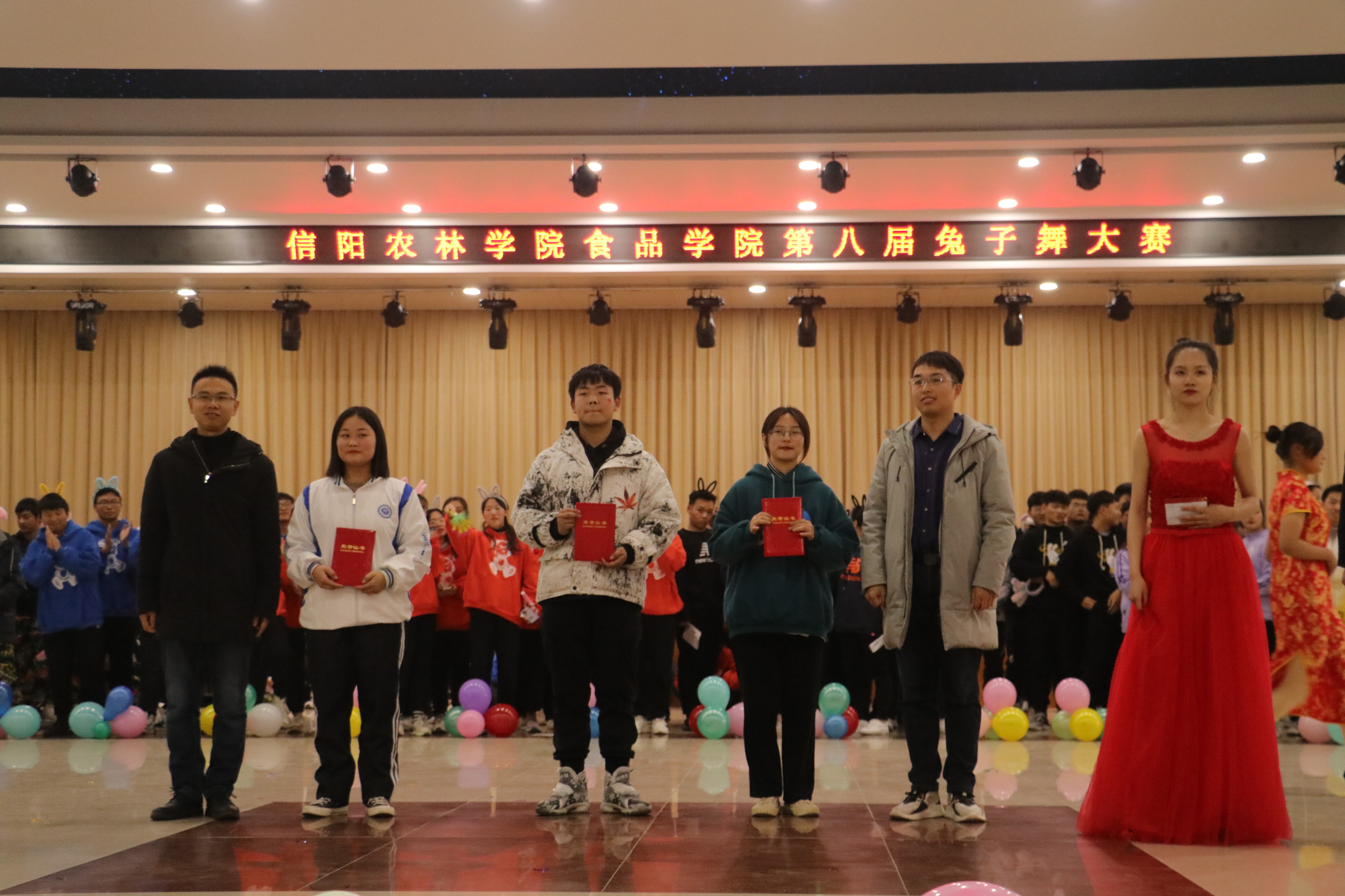 2020年12月6日下午14:30,食品学院第八届兔子舞大赛在一餐厅三楼隆重举行。beat365在线平台官网食品学院党总支书记夏新奎、食品学院院长邢淑婕、学生工作处副处长魏宗烽、食品学院党总支副书记刘涛、食品学院副院长邵颖、食品学院团总支书记易蕾、食品学院组织员王子伟,辅导员柳诚刚、曹蒙和靳羽慧老师担任此次大赛评委。