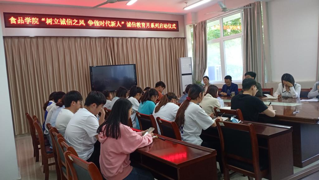 为加强对学生社会主义核心价值观教育,进一步弘扬诚信感恩传统美德,让学生树立正确的世界观、人生观、价值观。2022年5月3日下午,食品学院在1B206教室举行诚信教育月启动仪式,食品学院党总支副书记刘涛、团总支书记易蕾、组织员王子伟、专职辅导员黄卉卉和柳诚刚老师、学生干部及部分学生代表参加本次活动。