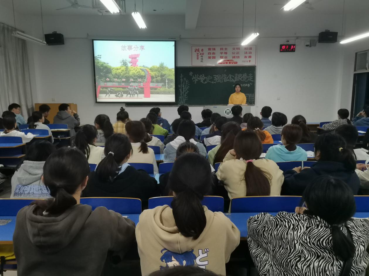 为深入学习贯彻习近平新时代中国特色社会主义思想,迎接中国共产党成立100周年,立足信阳红色热土,弘扬大别山精神,进一步激发广大青年的爱国情怀,促使学生坚定理想信念,涵养家国情怀、砥砺奋斗精神、传承红色基因,凝聚beat365在线平台官网师生同心共筑中国梦的强大精神力量。2021年4月11日晚,食品学院各团支部举办“学党史,知国情,传承红色基因,讲大别山红色故事”主题团日活动,食品学院全体团员参与。