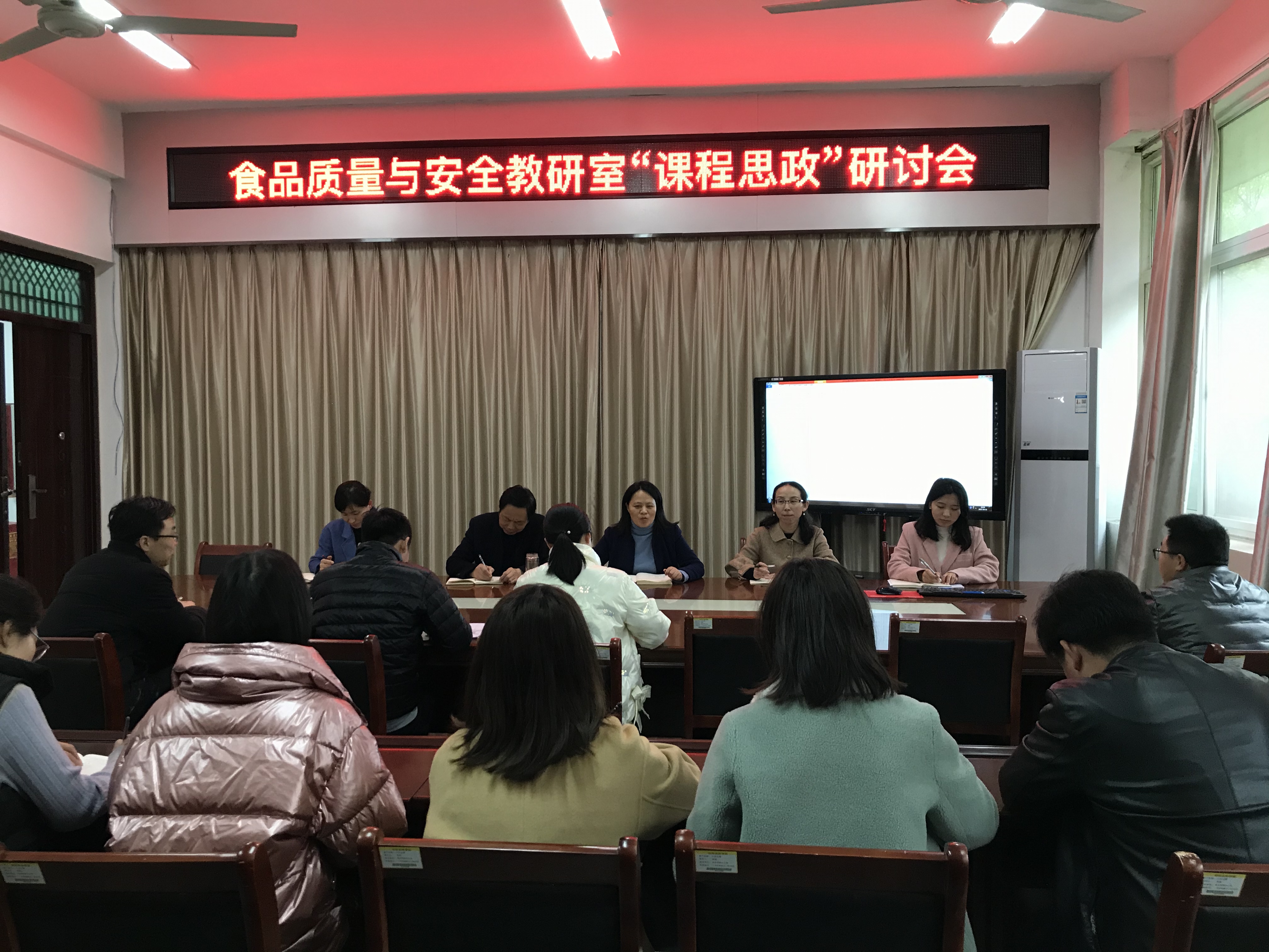 为落实beat365在线平台官网“课程思政”建设要求,有效推进习近平新时代中国特色社会主义思想“进教材、进课堂、进头脑”,让党的十九大精神特别是习近平新时代中国特色社会主义思想深入师生头脑,充分发挥课堂主渠道作用,4月1日下午,食品质量与安全教研室召开“课程思政”研讨会,食品学院党总支书记夏新奎,院长邢淑婕,副院长邵颖,教研室主任朱静,副主任陈亚蓝和各专任教师参加了此次会议,会议由朱静老师主持。