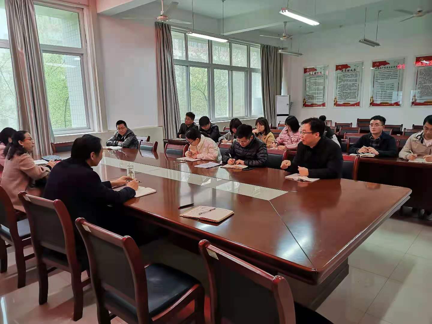 首先,邢淑婕院长传达了高等教育司刚刚召开的视频会议上公布的2021年教育部高等教育教学计划,其中关于课程思政元素的指示有:①加强课程思政建设,要在全国范围内遴选课程思政示范课;②加强基层教学组织建设。她表示,基层教学组织建设是人才培养的基本单元,人才培养的剧本是教材,核心要素是课程建设,关键突破口是教师,人才培养的最终目标是立德树人,课程思政则扮演载体的作用。要求人人身上有思政元素,门门课程包含思政元素。她还叮嘱各位老师要注意课前教学设计,思考思政元素的融入,做好平时积累,把准备工作做在前面,争取将来人人都能评选上校级和省级思政样本课程。