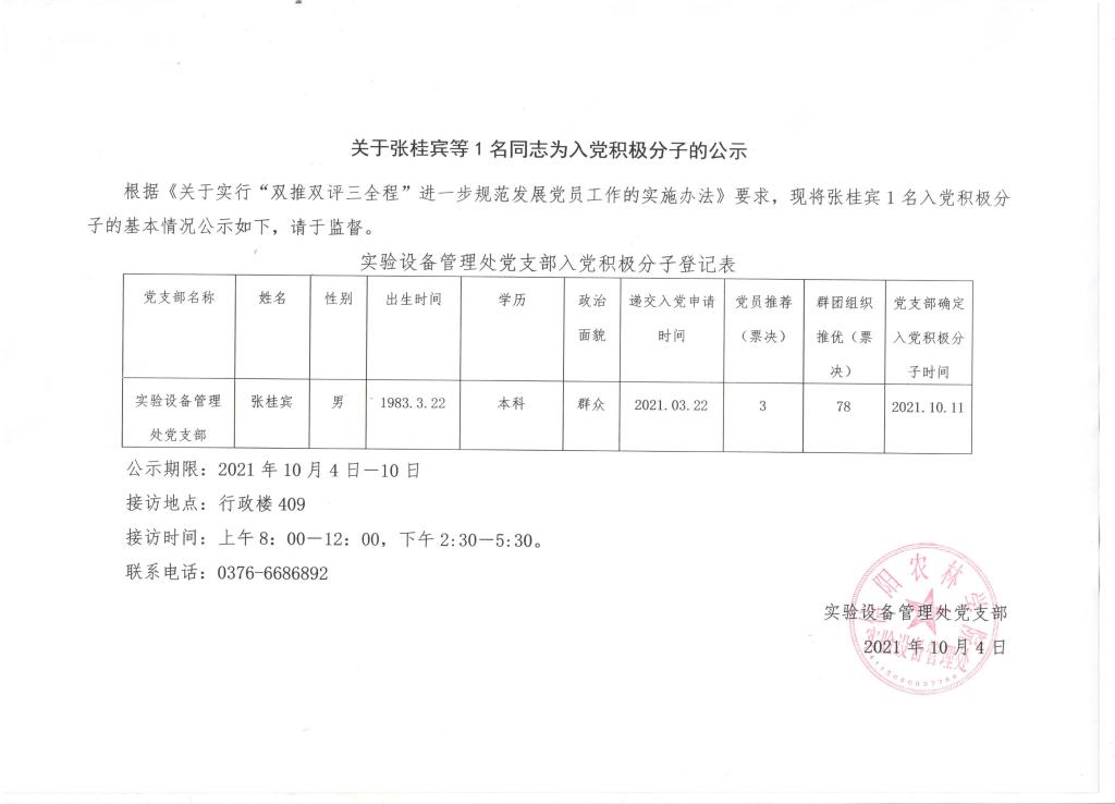 关于张桂宾等1一名同志为入党积极分子的公示