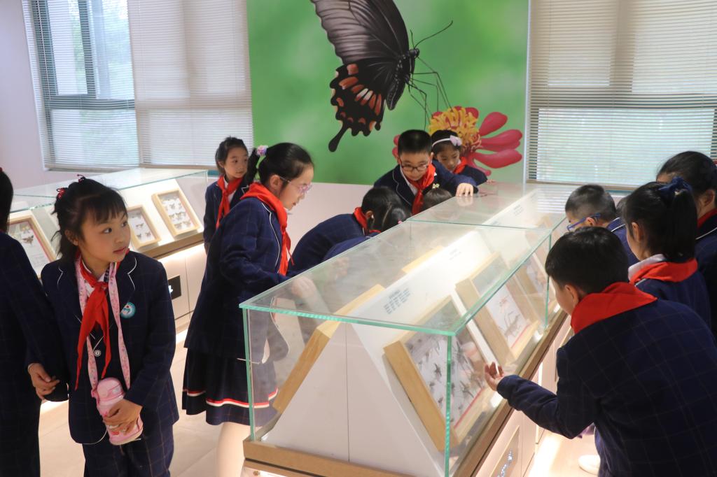 “一座博物馆就是一所大学校”,孩子们看见这些栩栩如生的动植物标本,问东问西,充满对未知知识的渴望。“哇,这个就是座山雕呀,长相真凶真丑....金雕好威武,不愧是猛禽之王;这个我知道,叫白冠长尾雉是国家一级重点保护野生动物,中国特产珍禽,将近两米的尾羽是吉尼斯世界纪录,爷爷爱看的戏曲穆桂英挂帅的"头饰"就是她;看,白鹭白鹭,一行白鹭上青天...这个是我们商城蔷薇、信阳玉兰、鸡公山茶秆竹;人参、丹参、党参、苦参...这些中药可真多呀,中医药是我们中华优秀传统文化的重要组成部分和典型代表,因为要治百病所以有成千上万种;这个叫冬虫夏草,是昆虫和菌的复合体;这个羊肚菌很好吃,这个白蘑菇有毒,谁敢试试就逝世;这对梁祝凤蝶真漂亮...如果蜜蜂灭绝我们人类只能活四年啊,知道520是爸爸妈妈结婚纪念日现在知道还是世界蜜蜂日...与昆虫有关的成语谁知道?蜻蜒点水、螳臂挡车、飞蛾扑火、春蚕到死丝方尽...”她们欢呼雀跃,寓教于乐,其乐无穷。