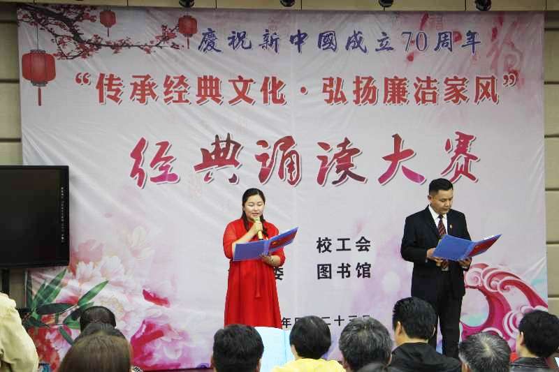 家风淳厚,赓续传承。在喜迎新中国成立七十周年之际,我们重温传统优秀文化,重读传世经典文本,重习礼仪诗书文明,为弘扬新时代社会主义核心价值观再注新力。本次活动历时一个多月,经过各党总支、分会的组织、预选和配合,来自全校各部门、院系的40多位教师参加了预赛,最终有16组作品挺进决赛。