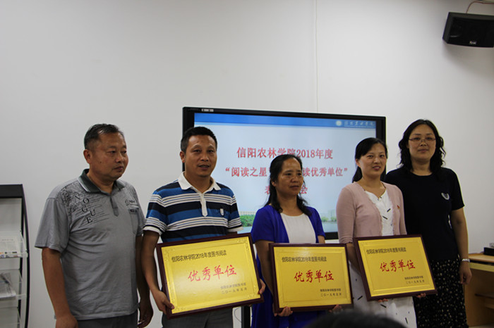 会上,刘明宣布,根据借阅管理系统统计出的各学院2018年度纸质图书借阅量和借阅率两项指标综合评定,图书馆决定授予农学院、园艺学院和生物与制药工程学院 3个学院为“阅读优秀单位”荣誉称号;依据2018年度学生个人纸质图书借阅量前十名排序,授予王战士等 10 名学生“阅读之星”荣誉称号,并分别为“阅读优秀单位”和“阅读之星”颁发了荣誉牌匾和荣誉证书。