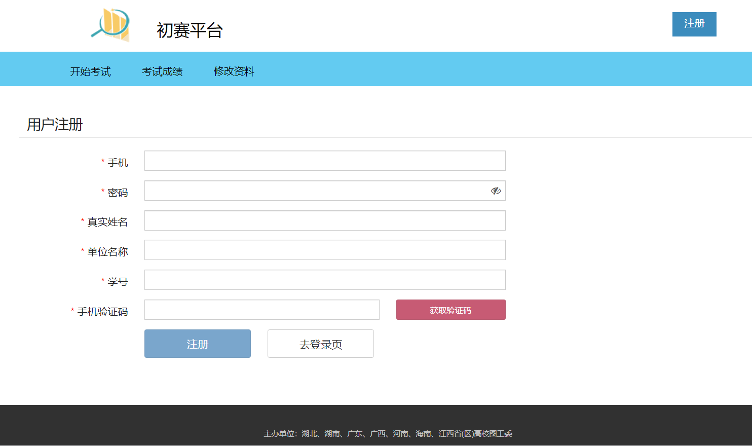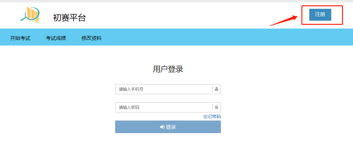 2.进入初赛平台后,还没有注册的同学请点击右上角“注册”。