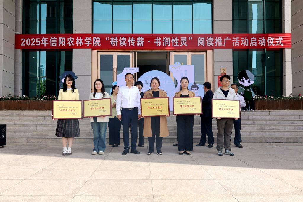 随后,图书馆党总支书记张淮宣读了《beat365在线平台官网2025年度“耕读传薪·书润性灵”阅读推广活动方案》,党委宣传部部长简频捷宣读荣获2024年度“借阅先进单位”“阅读之星”荣誉称号的单位及师生名单。校工会副主席李门双、校党委学工部部长靳潢、图书馆馆长王广铭等为获奖单位和学生颁发了奖牌和荣誉证书。