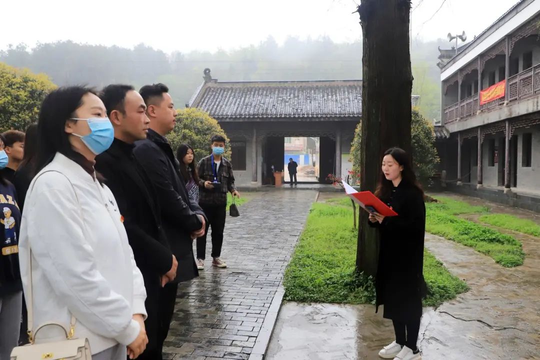 细雨霏霏,苍松翠柏在春雨中显得格外庄严肃穆。在细雨中,校团委孙羽佳老师首先介绍了豫南红色革命的摇篮和发源地,以及红色圣地柳林在民主革命时期发挥的重要作用。随后,丁志渊同学讲述了恽代英同志在柳林开办“互助社”传播星星之火的故事。在祝伟洋老师和李怡霏同学的带领下,在场党员和团员重温了入党和入团誓词,时刻牢记作为党员和团员的初心使命。