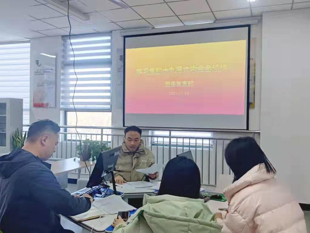 11月24日,校团委支部在校团委办公室召开党员大会,学习党的十九届六中全会精神,会议由支部书记王鹏主持。