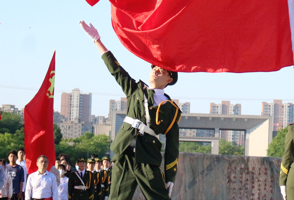 伴随着雄壮的《义勇军进行曲》,五星红旗冉冉升起,迎风飘扬。在场师生齐唱国歌,热血澎湃。大家一起追忆那激情燃烧的岁月,斗志昂扬砥砺奋进新的征程。