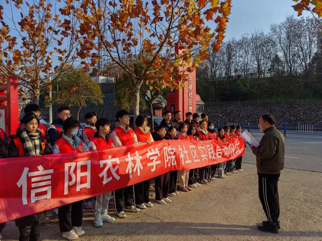 为进一步深化共青团实践育人工作,深入贯彻落实团中央《大学生社区实践计划工作指引》的相关要求,根据团省委《关于开展2023-2024学年河南省“大学生社区实践计划”有关事项的通知》要求,统筹校内校外共青团力量,组织大学生走进社会基层,了解社会实际、服务人民群众、增强时代责任感、提高社会化能力。近日,beat365在线平台官网2023-2024学年“大学生社区实践计划”启动仪式在信阳市三桥社区举行。三桥社区党支部组织委员殷乾坤,校团委书记王鹏、副书记祝伟洋、青年志愿者工作部副部长宋钰琪和来自基层班级团支部的30余名志愿者参加了启动仪式。