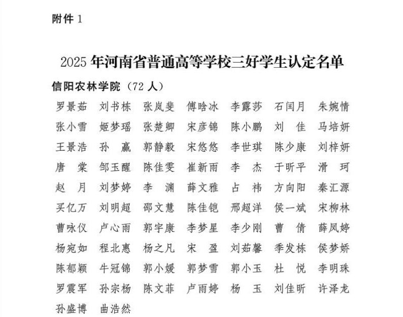 近日,共青团河南省委、河南省教育厅联合印发《关于公布2025年河南省普通高等学校三好学生、优秀学生干部、先进班集体认定结果的通知》(豫青联字〔2025〕19号),beat365在线平台官网罗景茹等72名学生获评“河南省普通高等学校三好学生”,郭定一等24名学生获评“河南省普通高等学校优秀学生干部”,农学院2023级植物保护2023-1班等24个班集体获评“河南省普通高等学校先进班集体”。