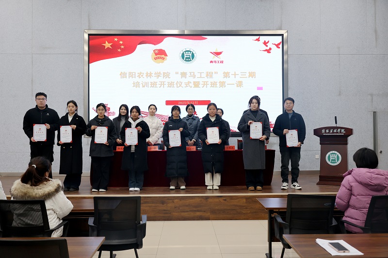 开班仪式在嘹亮的国歌声中拉开帷幕。与会领导为第十二期青马班优秀学员颁发荣誉证书,表彰他们在培训期间的突出表现与优异成绩。第十二期培训班学习委员赵蕊蕊作为优秀学员代表发言,分享了在理论学习与实践锻炼中的成长感悟。校团委副书记、第十三期青马班辅导员魏竞超宣读了培训纪律要求,明确学习规范与行为准则。校团委副书记祝伟洋为第十三期青马班授旗。第十三期培训班班长石书涛代表全体学员作表态发言,将带领同学们牢记初心使命,努力成长为有理想、敢担当、能吃苦、肯奋斗的新时代好青年,在民族复兴的征程中勇毅前行、贡献青春力量。