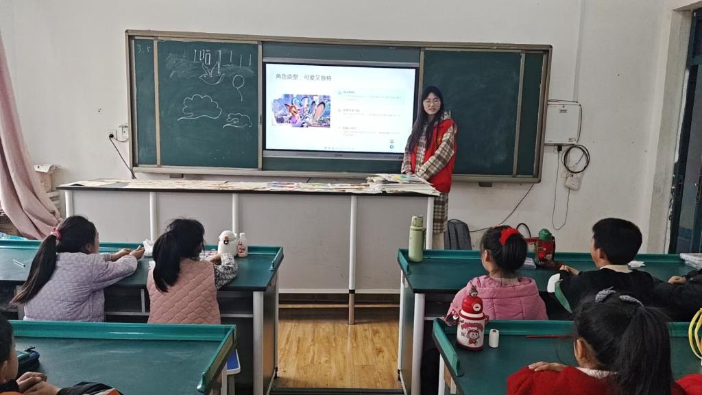 本次活动聚焦乡村儿童艺术素养提升,精准开设美术、音乐特色课程。志愿者们精心备课,将趣味教学与艺术启蒙深度融合。美术课堂上,志愿者围绕色彩认知、创意绘画展开教学,一对一指导孩子们构图、涂色、创作,引导孩子们用画笔勾勒自然、描绘梦想,在动手实践中激发艺术想象力与创造力。