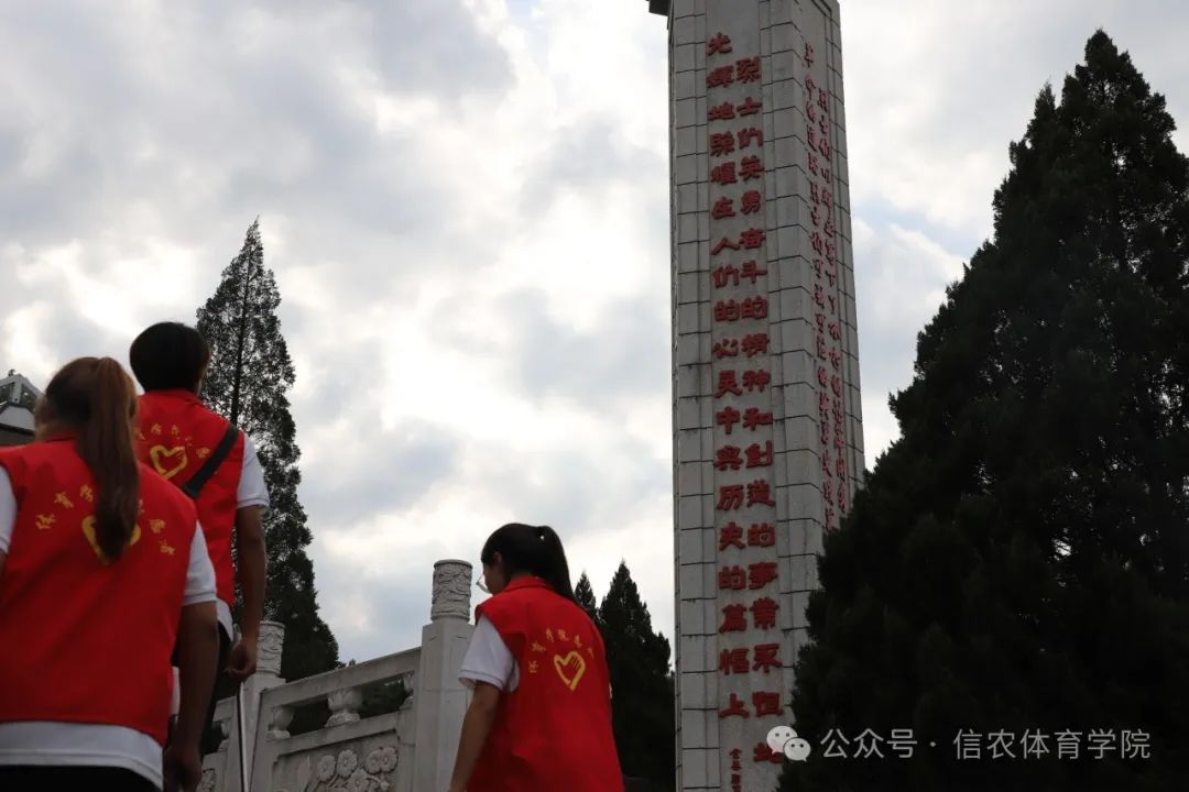 为缅怀革命先烈,弘扬革命精神,激发爱国情怀,凝聚奋进力量,在体育学院“三下乡”活动中,学生在老师组织下到鄂豫皖苏区首府烈士陵园举行祭扫活动。