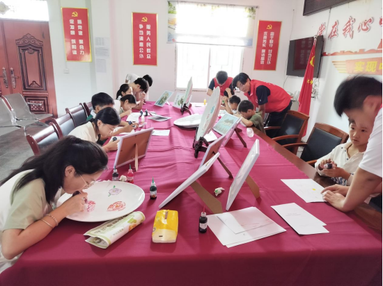 在与乡村孩子的互动环节,充满了欢声笑语。师生们与孩子们一起制作果酱画,用果酱在餐盘上绘制出各种精美的图案。过程中,师生们向孩子们传达了节约粮食的理念,鼓励他们珍惜每一粒粮食。此外,团队还带来了精彩的八段锦表演,充分展示了传统养生功法的魅力。表演结束后,师生们手把手教小朋友们一些简单的八段锦动作,让孩子们在强身健体的同时,感受中华优秀传统文化的博大精深。