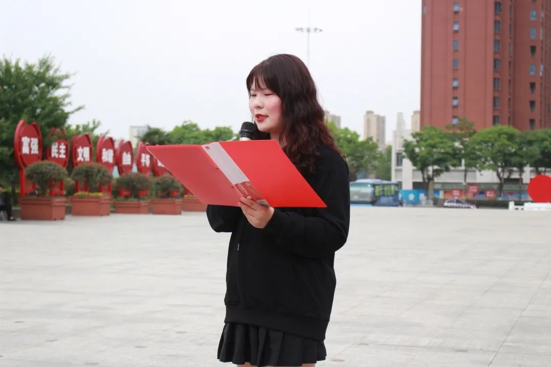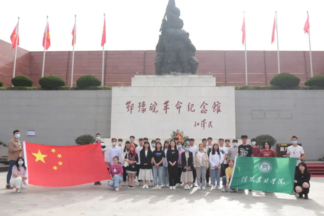 在鄂豫皖革命纪念馆,师生们佩戴团徽,面向国旗齐唱国歌,在学生团干部代表余文静同学的带领下重温入团誓词、唱响团歌。团员代表崔慧莹同学作了发言,全面回顾了鄂豫皖革命根据地辉煌的历史功绩,号召同学们要继往开来,铭记英雄事迹、传承红色基因,弘扬爱国志、以才报国恩。