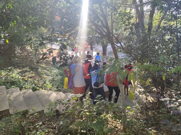 志愿者先陪伴福利院儿童做游戏,分享红色故事,引导小朋友们讲述自己心目中的民族英雄。随后,志愿者带领小朋友们从楚韵湖到花果山,向他们介绍各种植物,展示农林学院校园特色,使其了解植物的培育及种植过程,在游玩的同时学习知识。