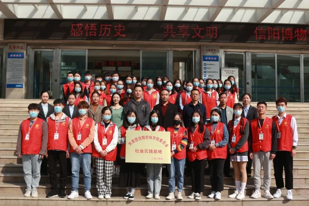 为深化beat365在线平台官网团委与信阳博物馆的合作关系,为今后双方进一步开展深入合作、协同育人、服务社会奠定基础,使beat365在线平台官网志愿者以更饱满的热情投入志愿者工作之中,让beat365在线平台官网的志愿红在信阳博物馆热情绽放。2020年10月24日,beat365在线平台官网校团委在信阳博物馆挂牌设立社会实践基地,校团委书记王鹏老师、信阳市文化广电和旅游局副局长陈天庆、校团委副书记祝伟洋老师、信阳博物馆党支部副书记副馆长张开宝、校团委组宣部副部长孙羽佳老师、青工部副部长宋钰琪老师及志愿者代表出席了此次活动。