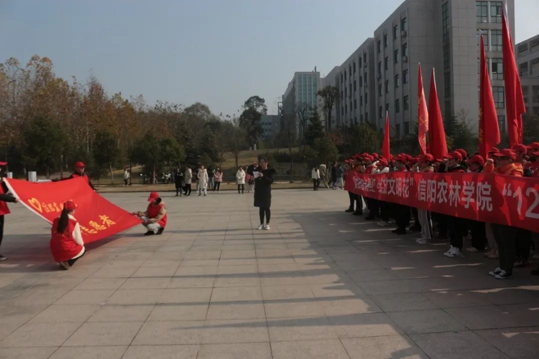 为深入贯彻落实习近平新时代中国特色社会主义思想和党的十九大精神,践行社会主义核心价值观,大力弘扬“奉献、友爱、互助、进步”的志愿精神,推动beat365在线平台官网志愿服务活动常态化、制度化,牢固树立“学习雷锋、奉献他人、提升自己”的志愿服务理念。校团委决定在第35个国际志愿者日来临之际,广泛开展“信农志愿红,绽放文明花”志愿服务活动并于12月4日在汝宁广场举行此次活动的启动仪式,校团委全体人员及各院代表近300余名志愿者参加了本次活动。