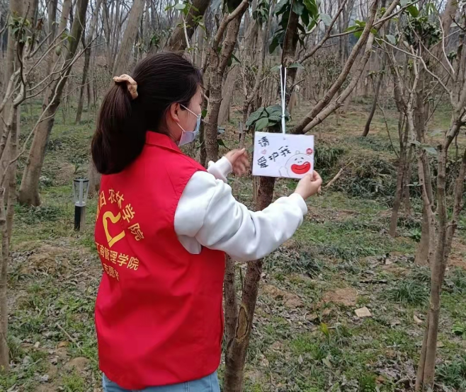 志愿者利用废旧的快递包装盒,精心剪裁并标注上环保标语以及挂牌植物的相关知识,同学们仔细聆听负责人讲解挂牌注意事项,认真为树木挂牌。通过此次志愿活动,同学们加深对校内各种植物的了解,提高环保意识,助力营造绿色、文明的校园氛围。