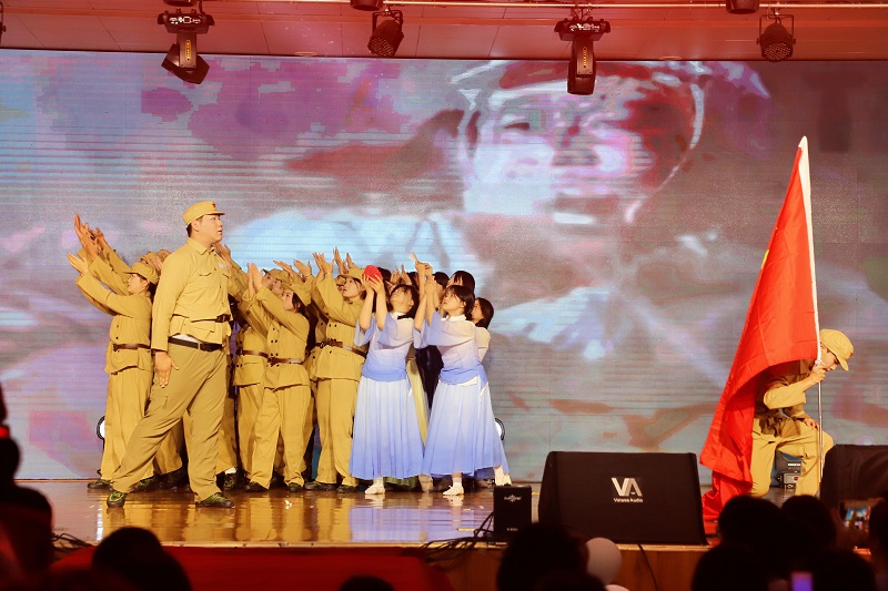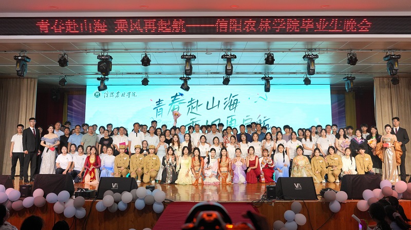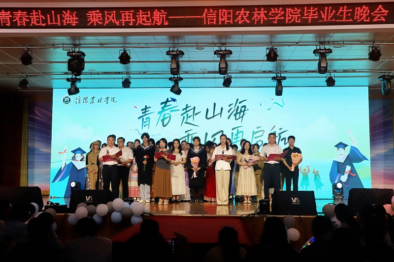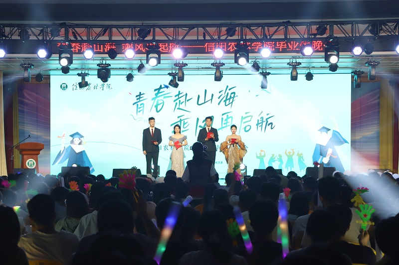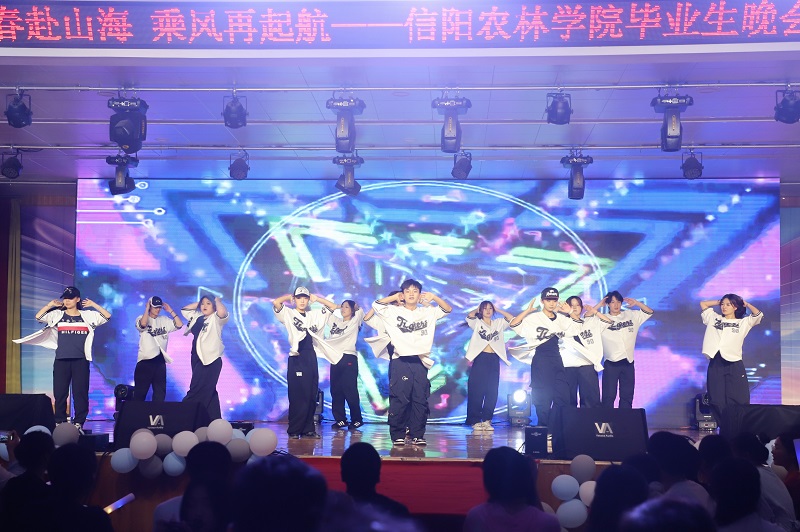 整场晚会以“青春·忆往昔”“梦想·绽芳华”“未来·勇向前”三个篇章铺陈开来,包括灯光秀、独唱、歌伴舞、舞蹈等多种节目形式,整台晚会创意十足,氛围热烈,所有演职人员用全情的投入和倾情的付出,呈现了信农师生在团结中奋进,在创新中发展的昂扬姿态和精神风貌。晚会在现代舞的青春律动中拉开序幕,点燃了现场观众的热情。歌曲《着魔》的激扬旋律象征着毕业生们用奋斗去书写青春的呐喊。《第一时间》《有形的翅膀》《荒漠上行走》《世界赠予我》等一首首经典的曲目在同学们的深情演绎下,焕发出新的魅力,彰显同学们青春的力量。歌曲《启程》将晚会推向第一个高潮,毕业生代表们青春有力的宣言,表达了对母校深沉的不舍与真挚的祝福。舞蹈《小河淌水1952》带我们穿越时空隧道,用饱含深情的舞姿传递着同学们对祖国炙热的爱。《籽籽同心一家亲》用悠扬的旋律与精美的民族服饰交织,在舞台上绘制出一幅绚烂的画卷,吟诵着树高千尺有根,水流万里有源,56个民族民心相通、守望相助、团结和睦的动听赞歌。歌伴舞《只有河南》用青春致敬经典,象征着毕业生们用青春与智慧绘就乡村振兴新画卷的铮铮誓言。
