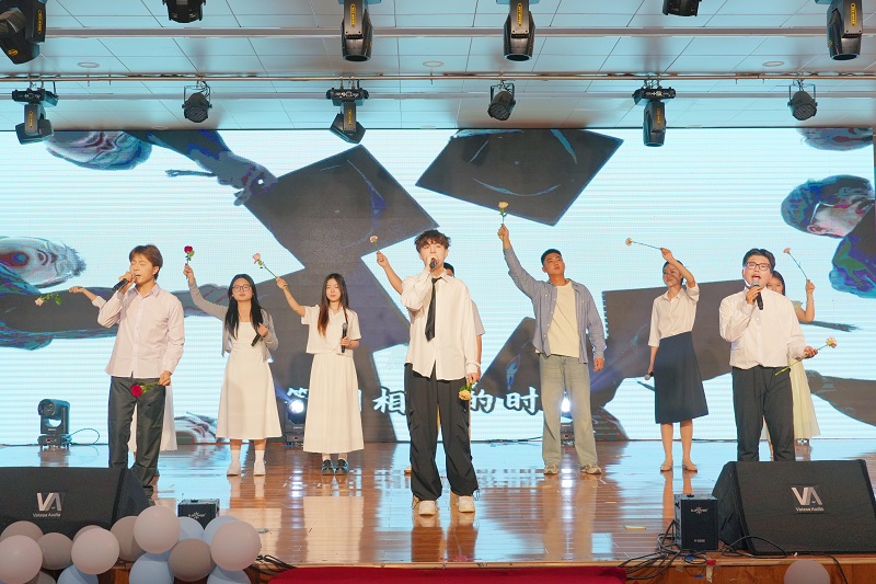 师生合唱《祝你一路顺风》将晚会的气氛推向顶点,呐喊声与掌声交织,师生情谊在此刻升华为双向奔赴的青春承诺,书记院长们的温暖祝福,突破传统的“硬核抒情”,消解了离别的沉重,愿毕业生们未来既有独当一面的勇气,也有携手同行的温暖。
